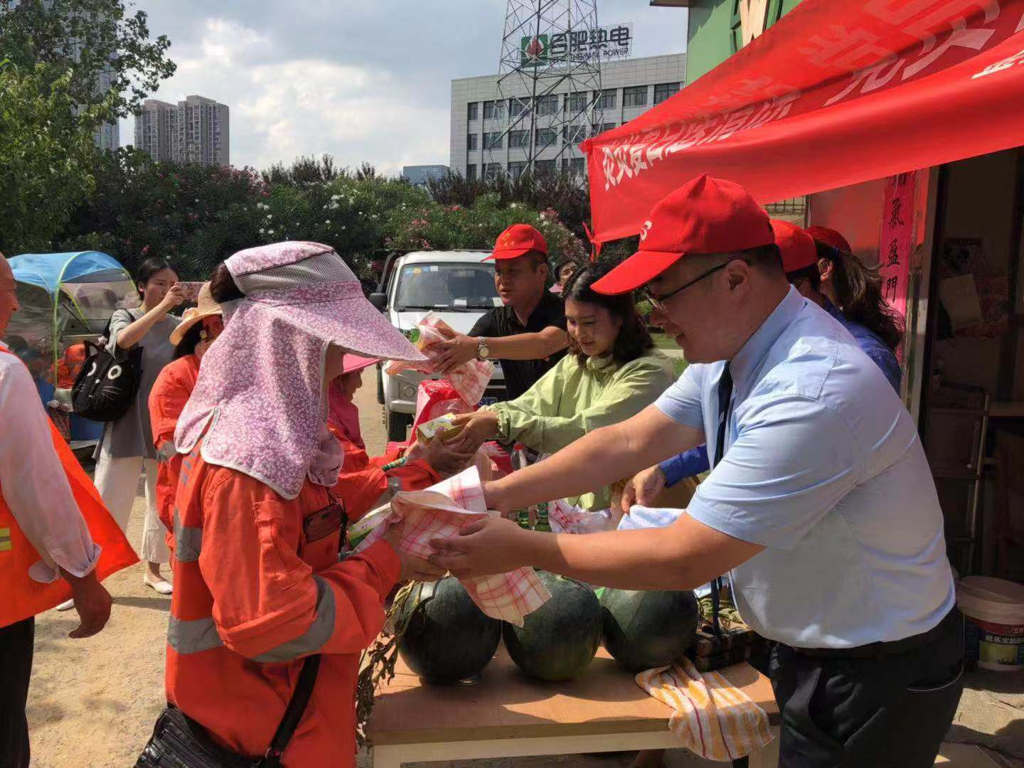 為轄區內的環衛工人發放了防暑降溫物品。